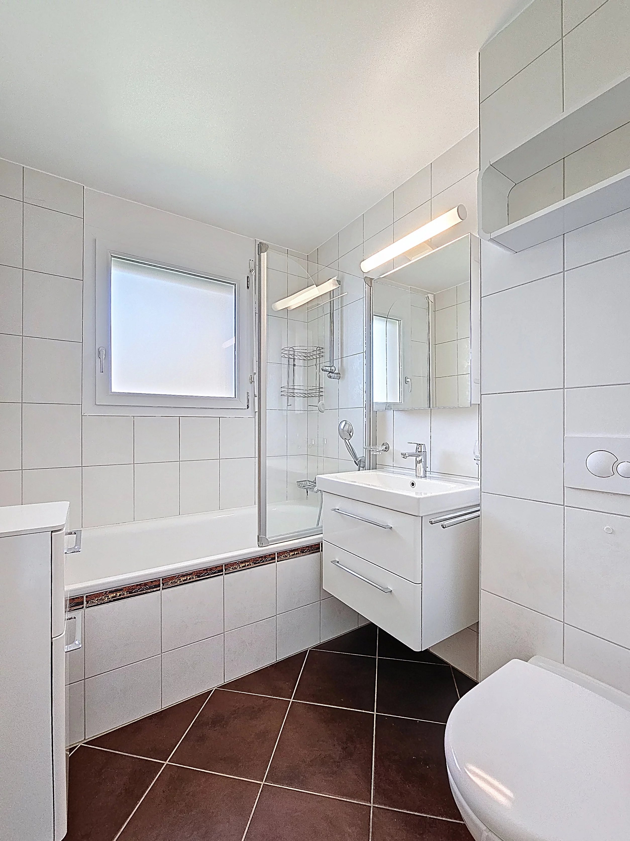 The neighborhood is green and family-friendly, close to shops, amenities, schools, highways, and the « Riviera Chablais » hospital.