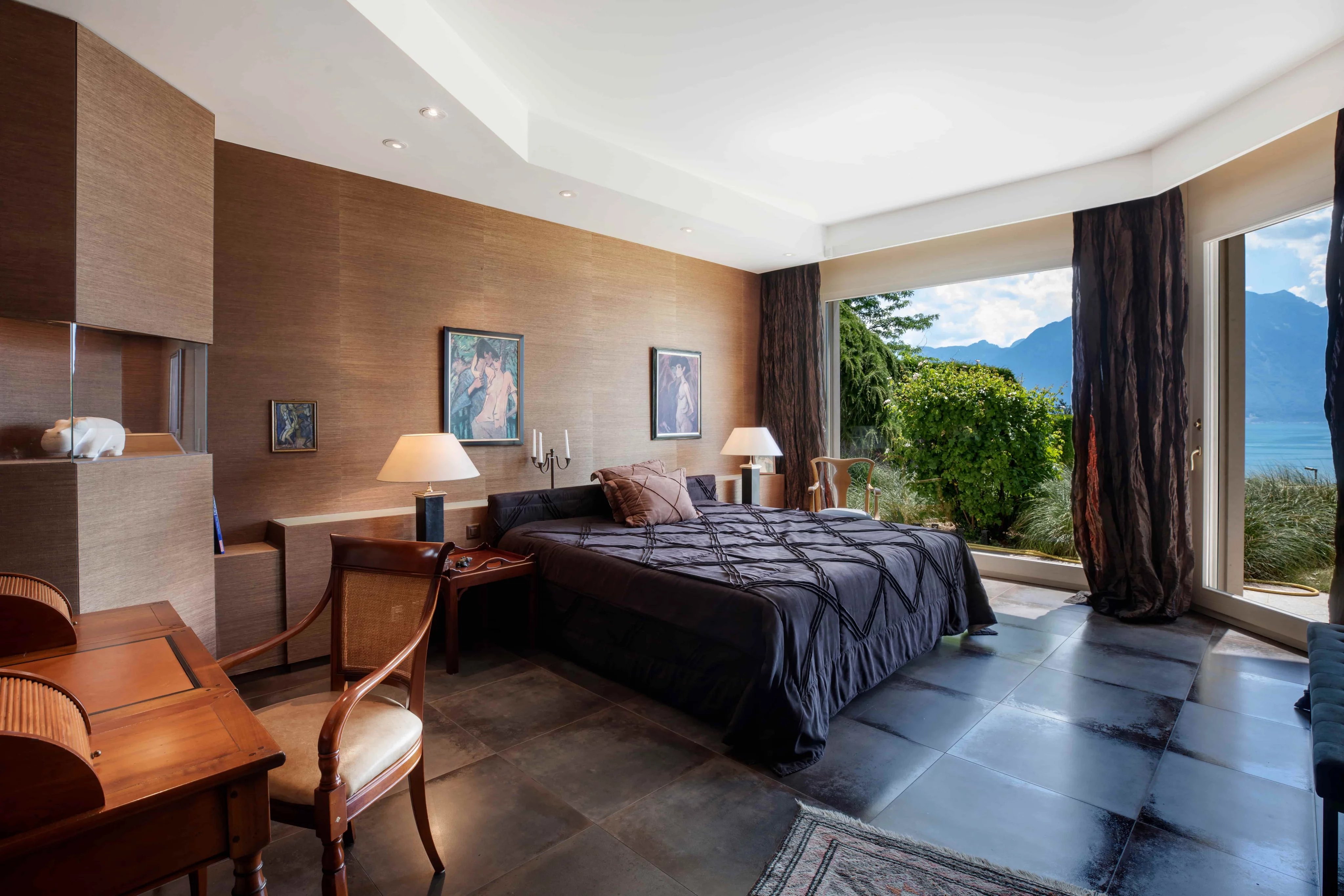 It enjoys panoramic views of the lake and mountains.