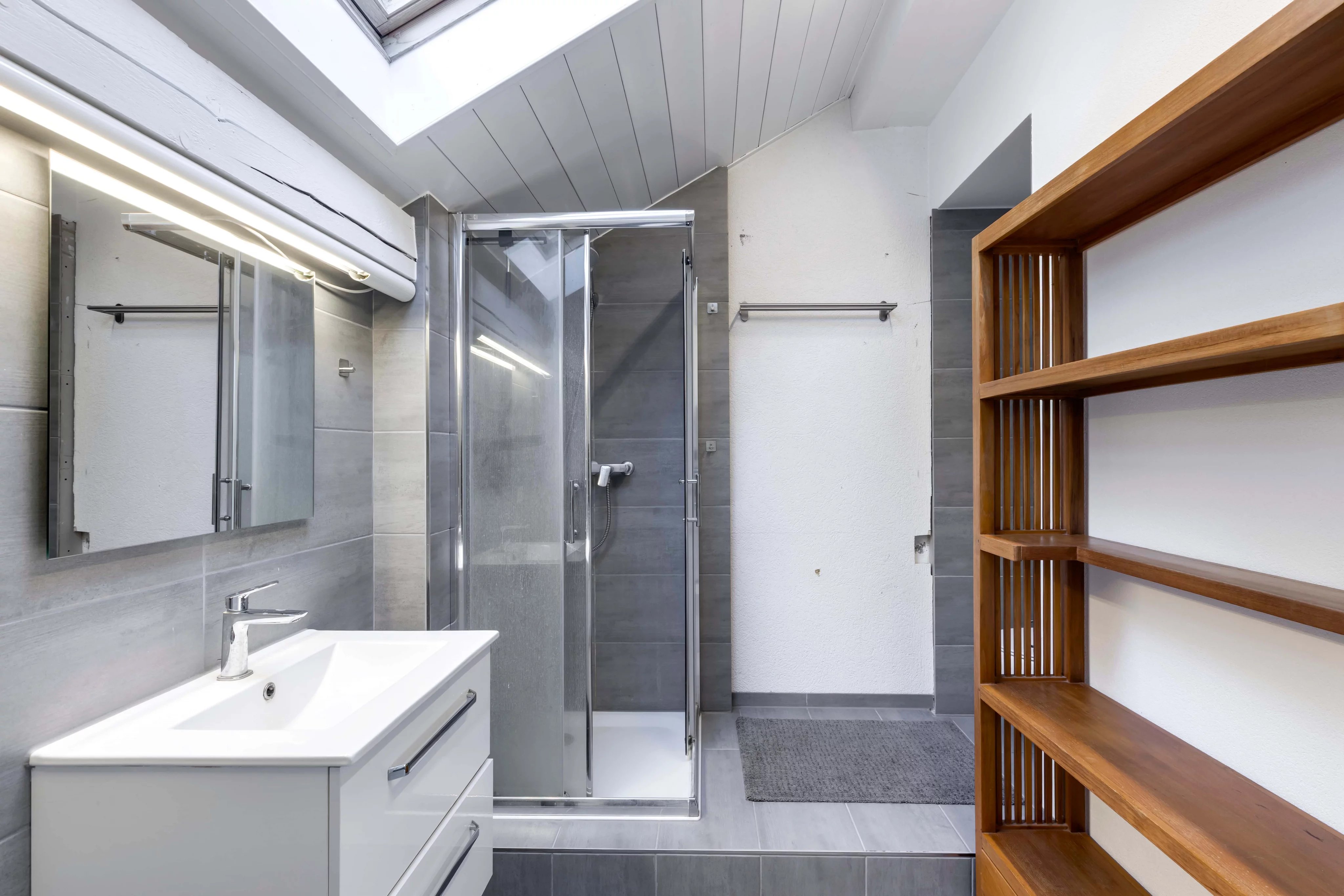 An independent entrance gives access to the attic level, fitted out as an office space with kitchen, bathroom and guest toilet. This quiet area is ideal for professional use, guest accommodation or housing for domestic staff. A valid building permit allows for the more spectacular openings.