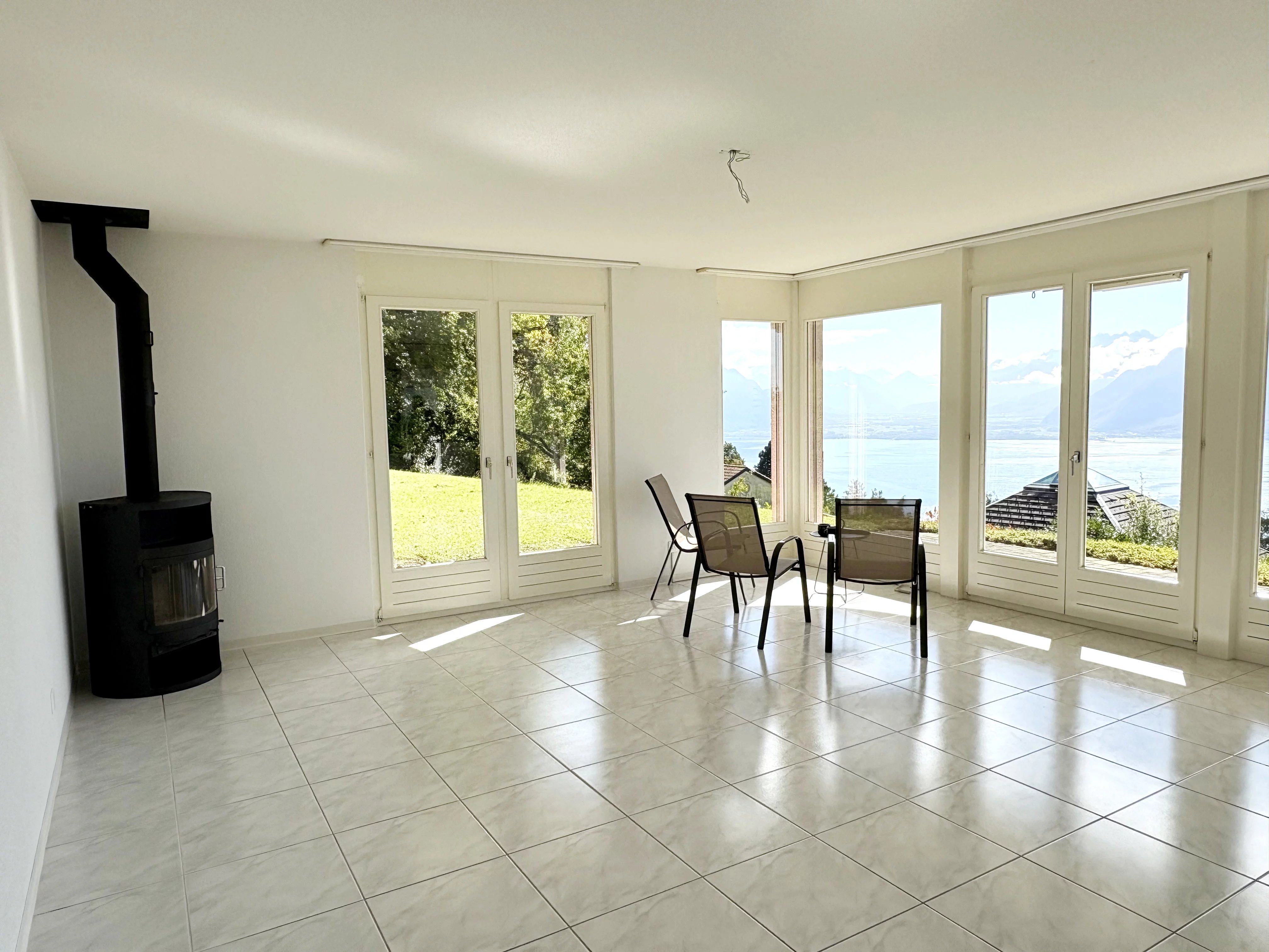 In a quiet, residential area of Mont-Pèlerin, 4-room garden-level apartment with terrace: