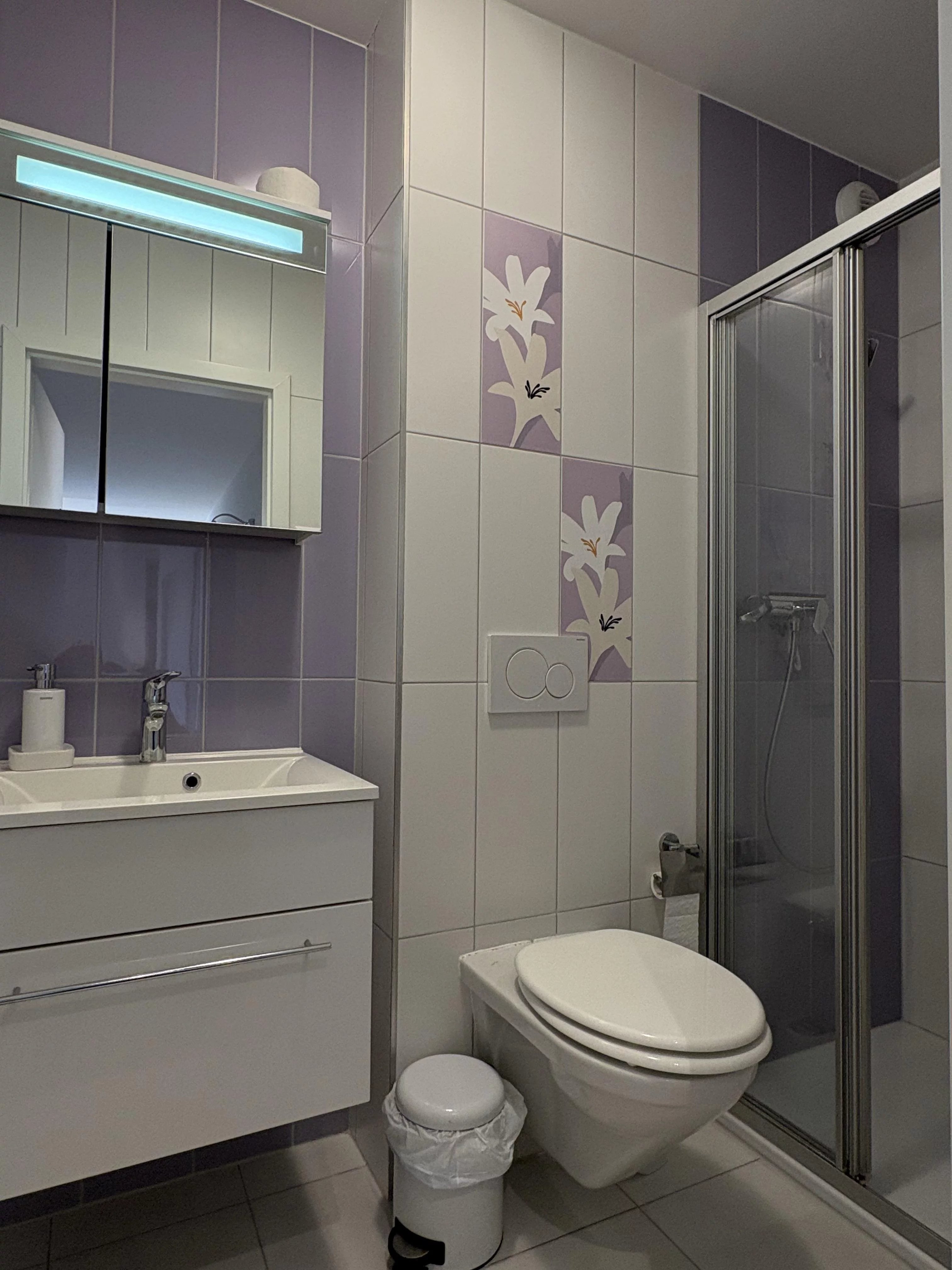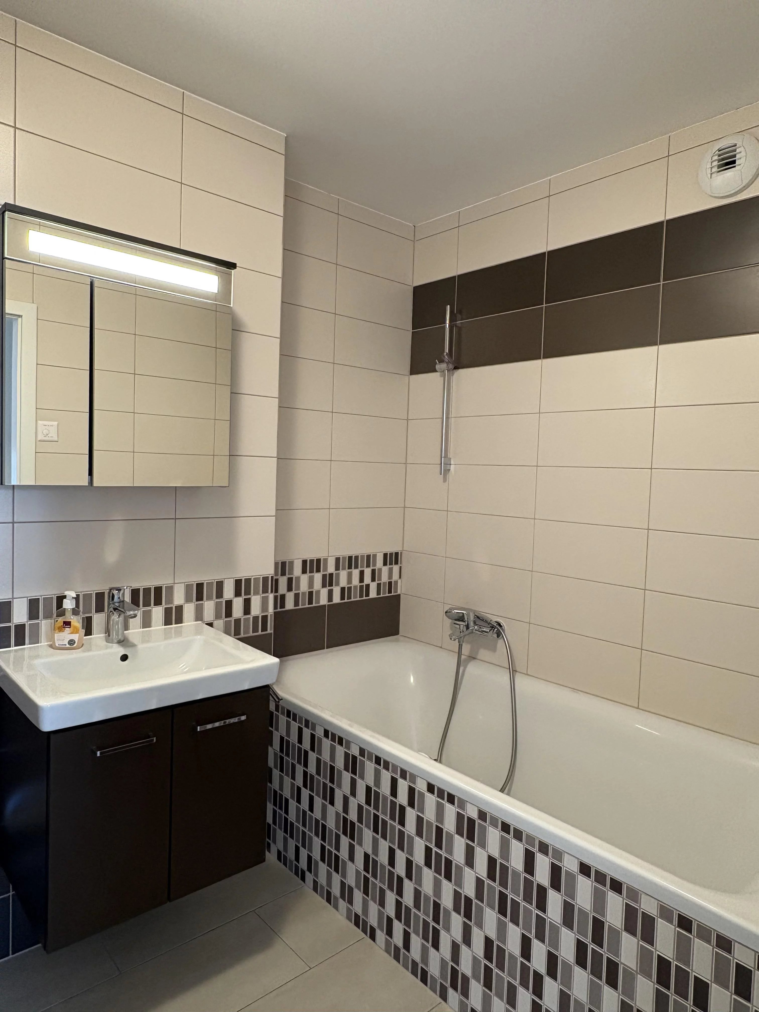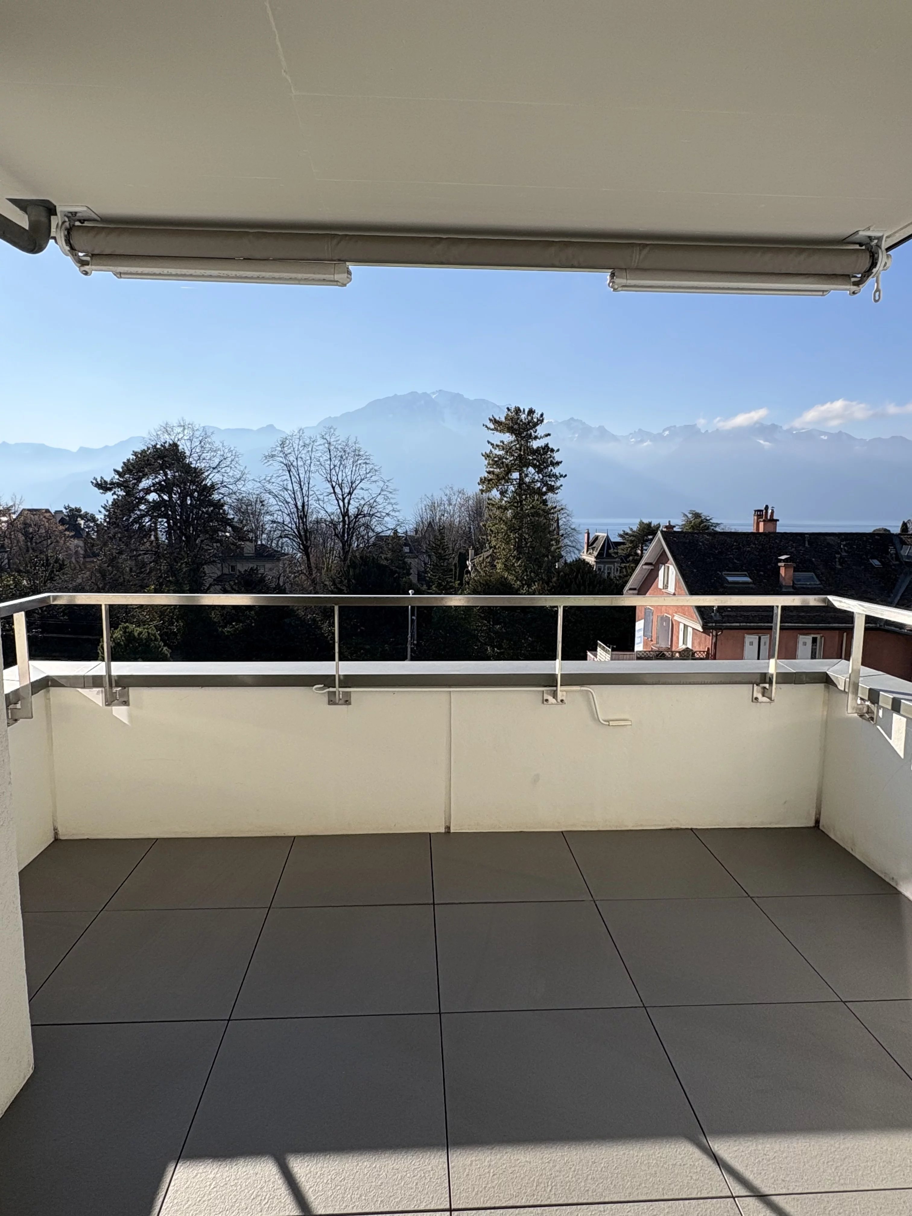 108 m², 4.5-room through-apartment with 9 m² terrace and small north-facing balcony, located on the 4? floor of a carefully-maintained condominium. It is bright and offers a beautiful view of the lake.