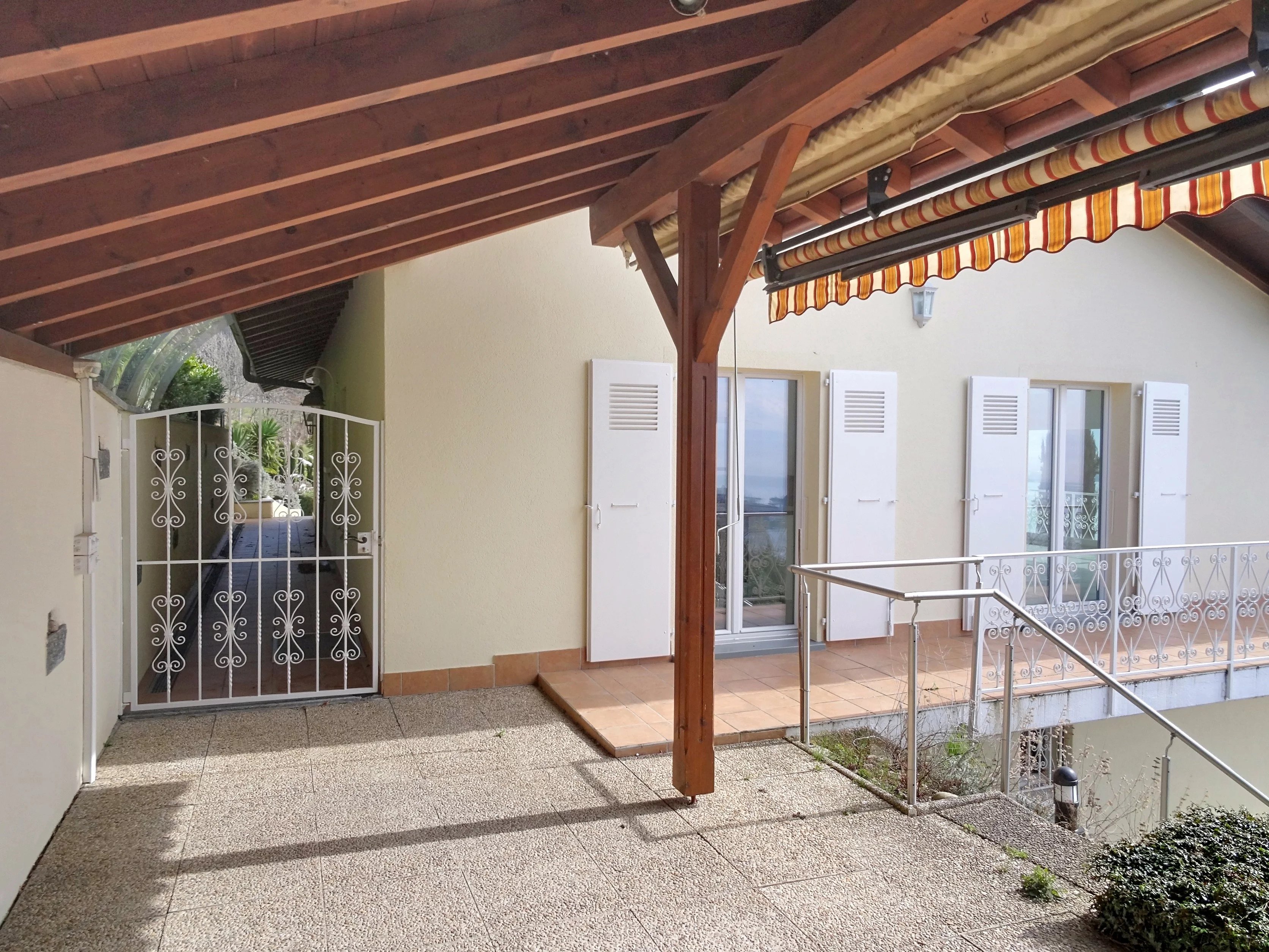 sheltered terrace with motorized awning
