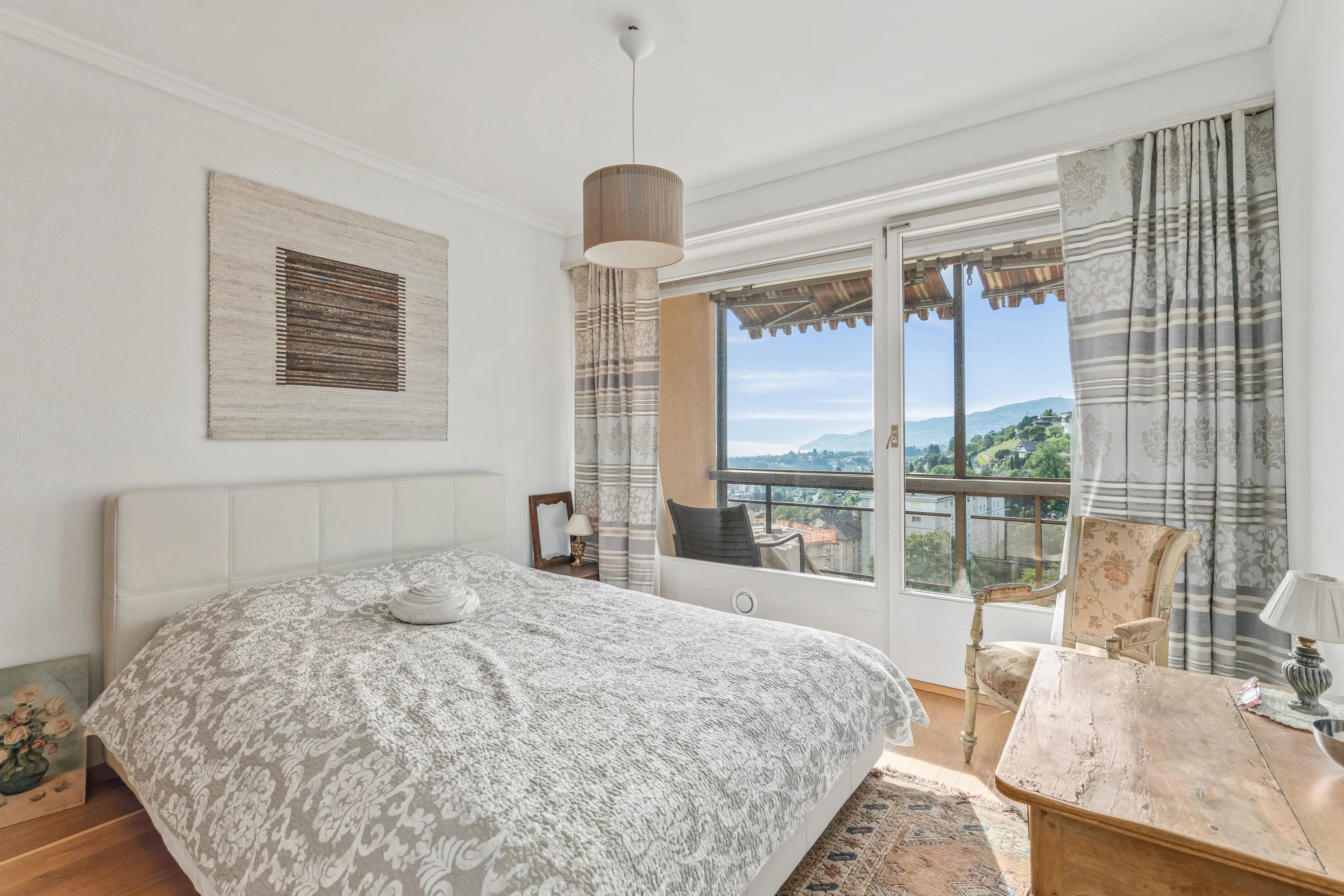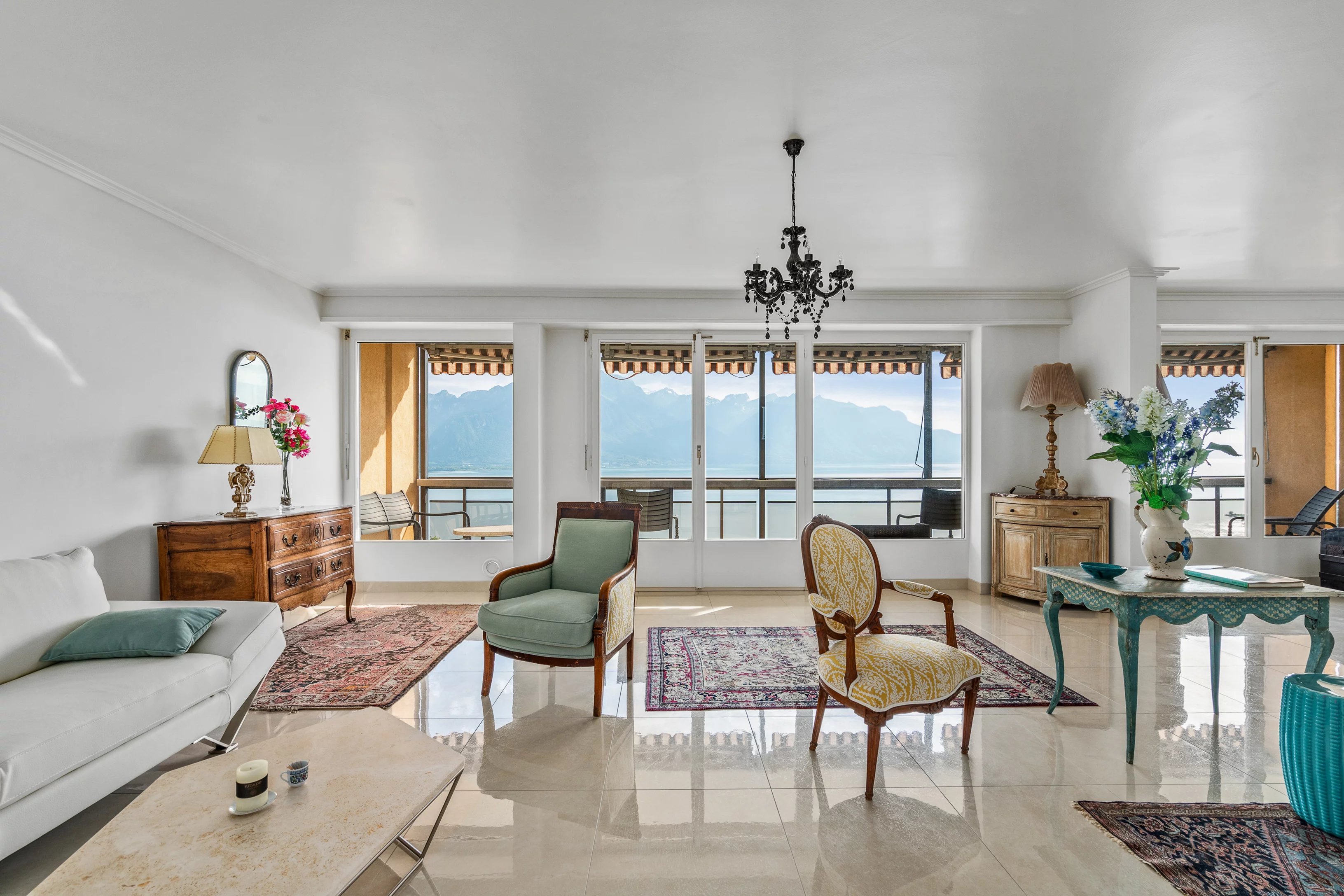 Vue époustouflante sur le lac, les montagnes et la ville de Montreux.