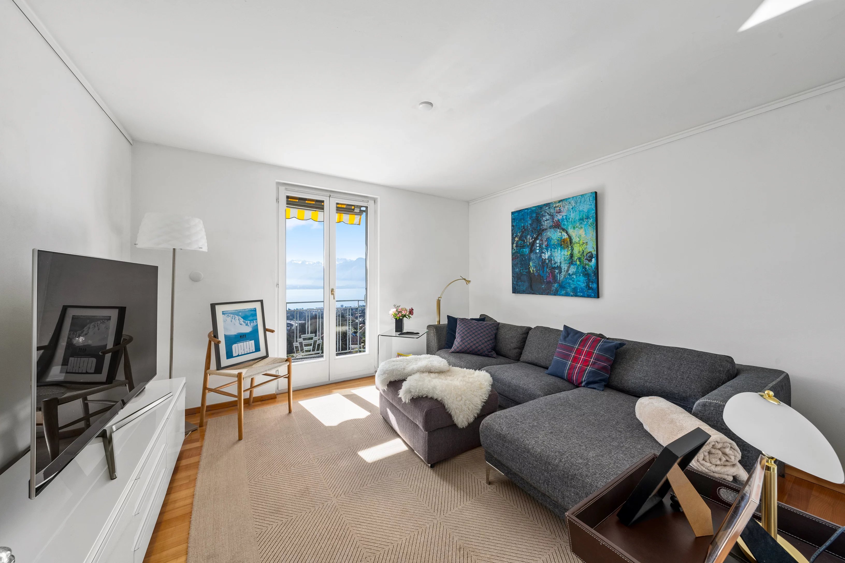 Au rez supérieur, vous trouverez une lumineuse pièce à vivre agrémentée d’une cheminée, une salle à manger et une cuisine entièrement équipée. L’ensemble de ces pièces donne accès à un grand balcon où vous pourrez profiter d’une vue panoramique sur le Bassin Lémanique. Un petit salon et un WC visiteurs complètent ce niveau.