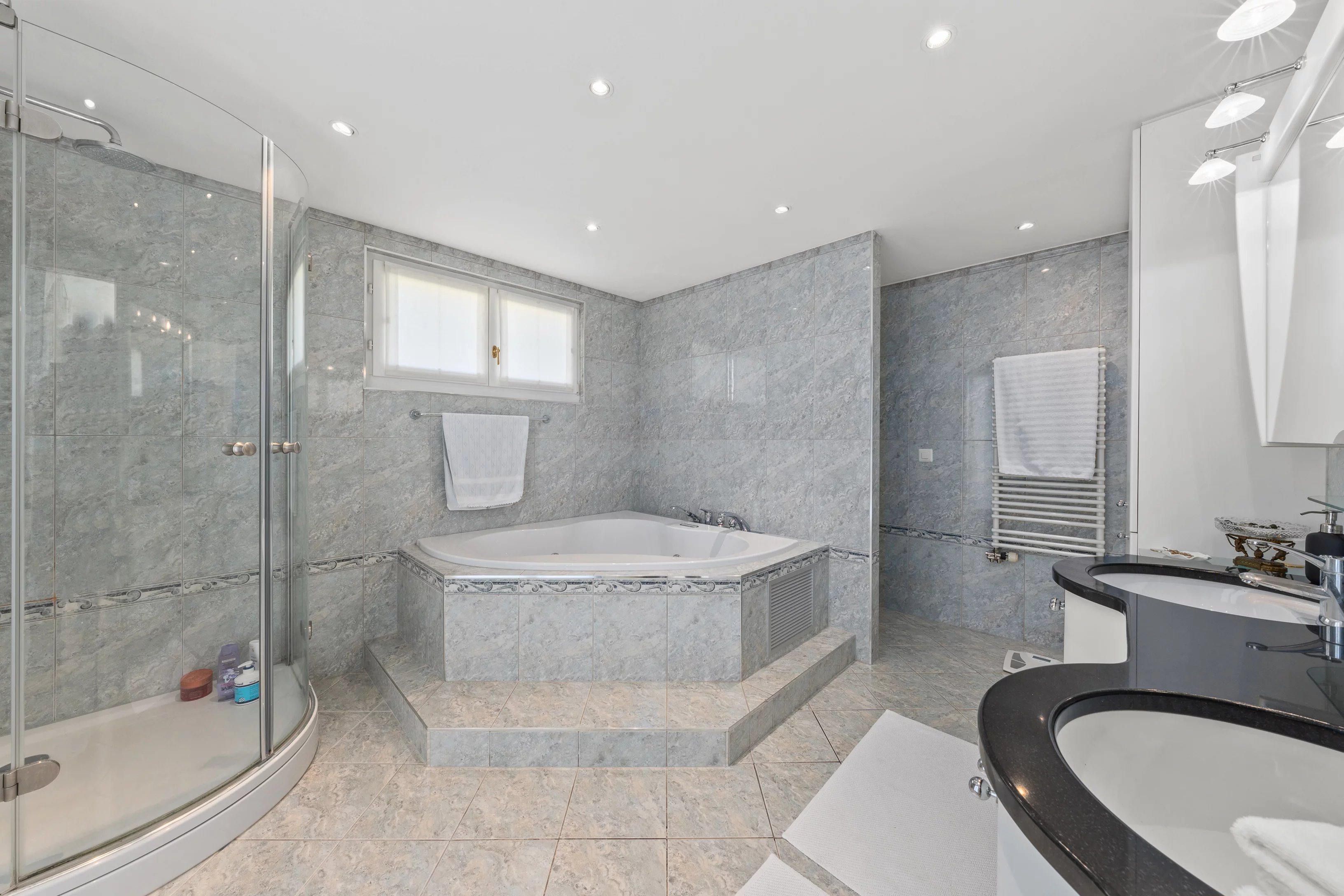 Située dans un quartier résidentiel paisible et verdoyant, à deux pas du coeur du village, cette magnifique propriété vous séduira grâce à l’exceptionnelle vue panoramique dont elle bénéficie sur le lac et les montagnes.