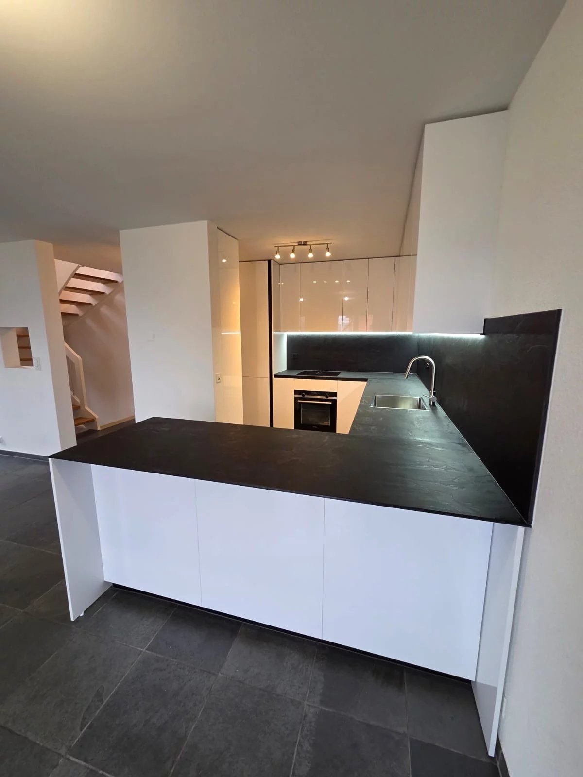 - Cuisine agencée ouverte neuve, avec ìlot central