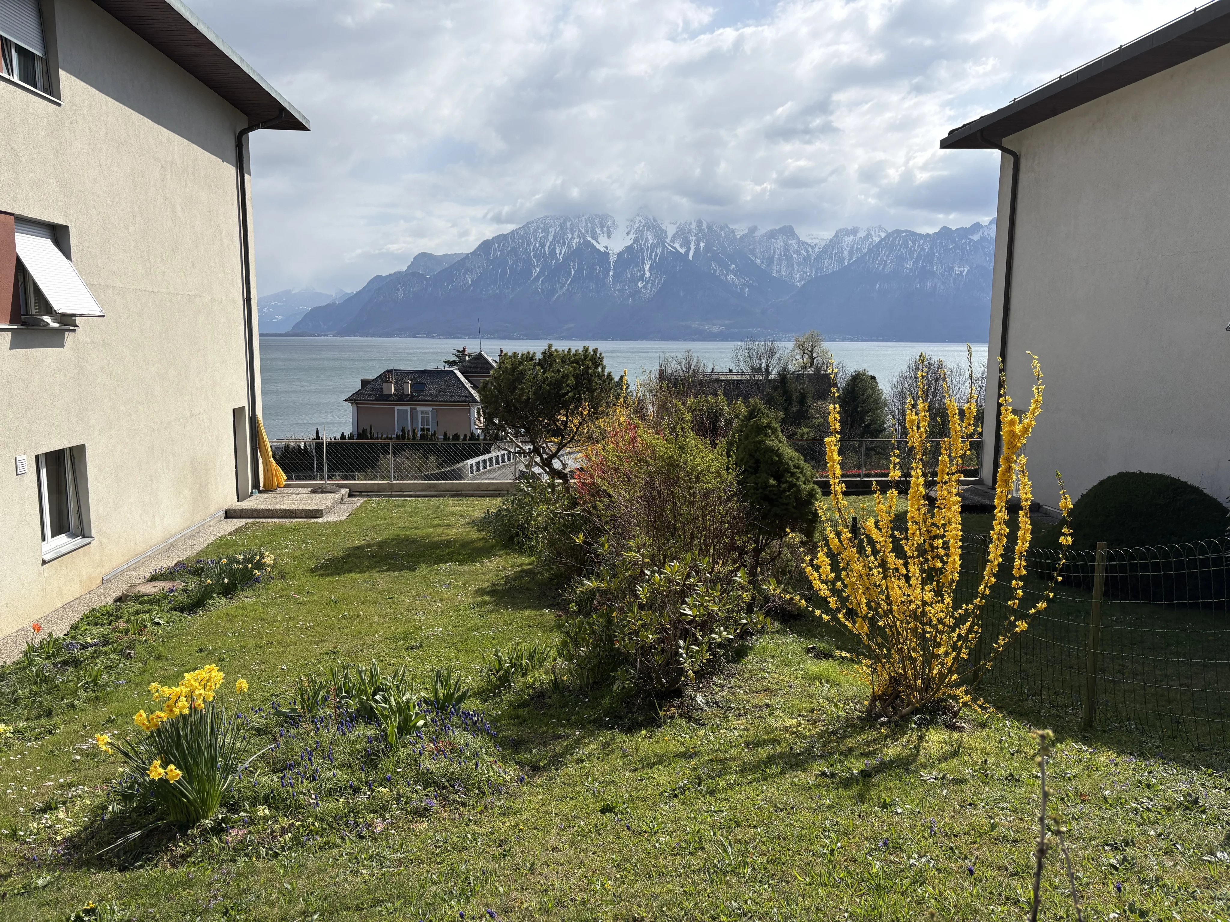 Arrêt de train à proximité, bus, bord du lac et Plage de la Grotte à 5 minutes à pieds, à 800 mètres du siège de Nestlé et de l'entrée de la Ville de Vevey, ramassage scolaire pour les élèves du Haut-Lac.